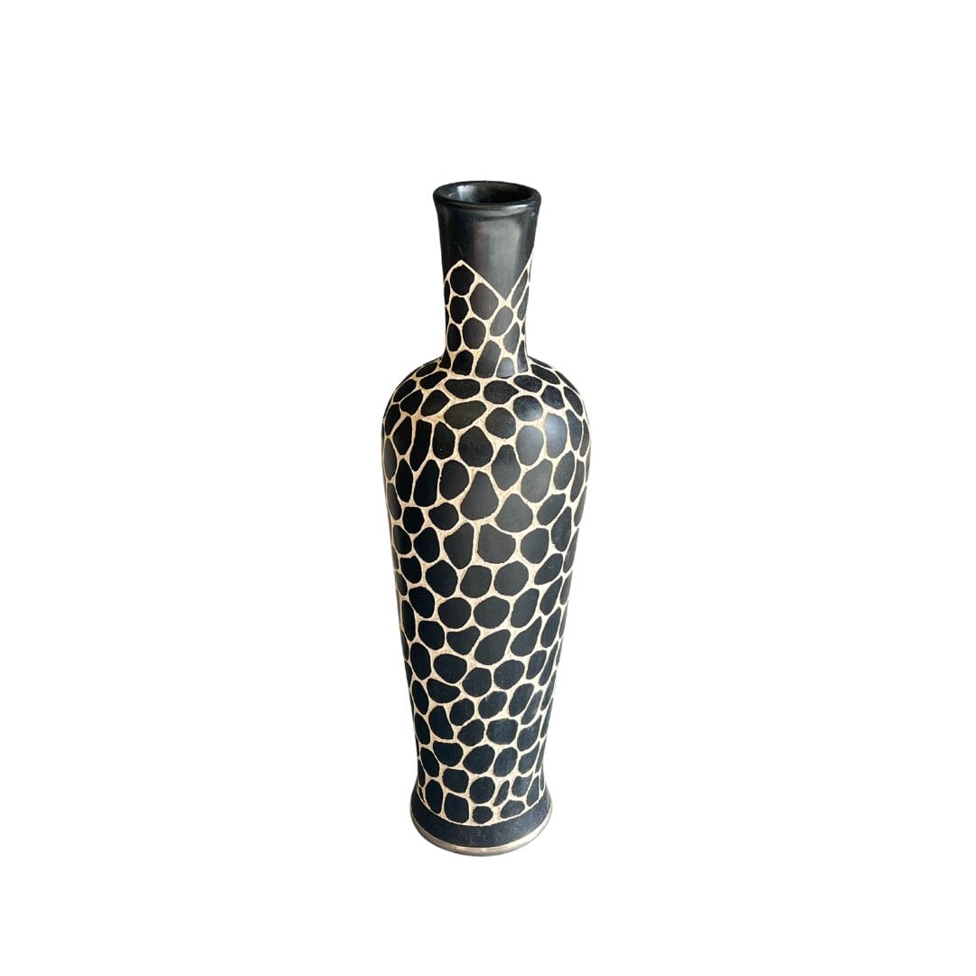 Découvrez notre jarre Rosi allongée, un modèle sans chapeau au design authentique et raffiné. Entièrement façonnée à la main, cette jarre artisanale en céramique noire se distingue par ses motifs sculptés qui lui confèrent une élégance unique. Son allure élancée et sa finition mate en font une pièce décorative de caractère. Que ce soit seule ou accompagnée d’autres objets, elle sublimera n’importe quel espace avec son charme artisanal.