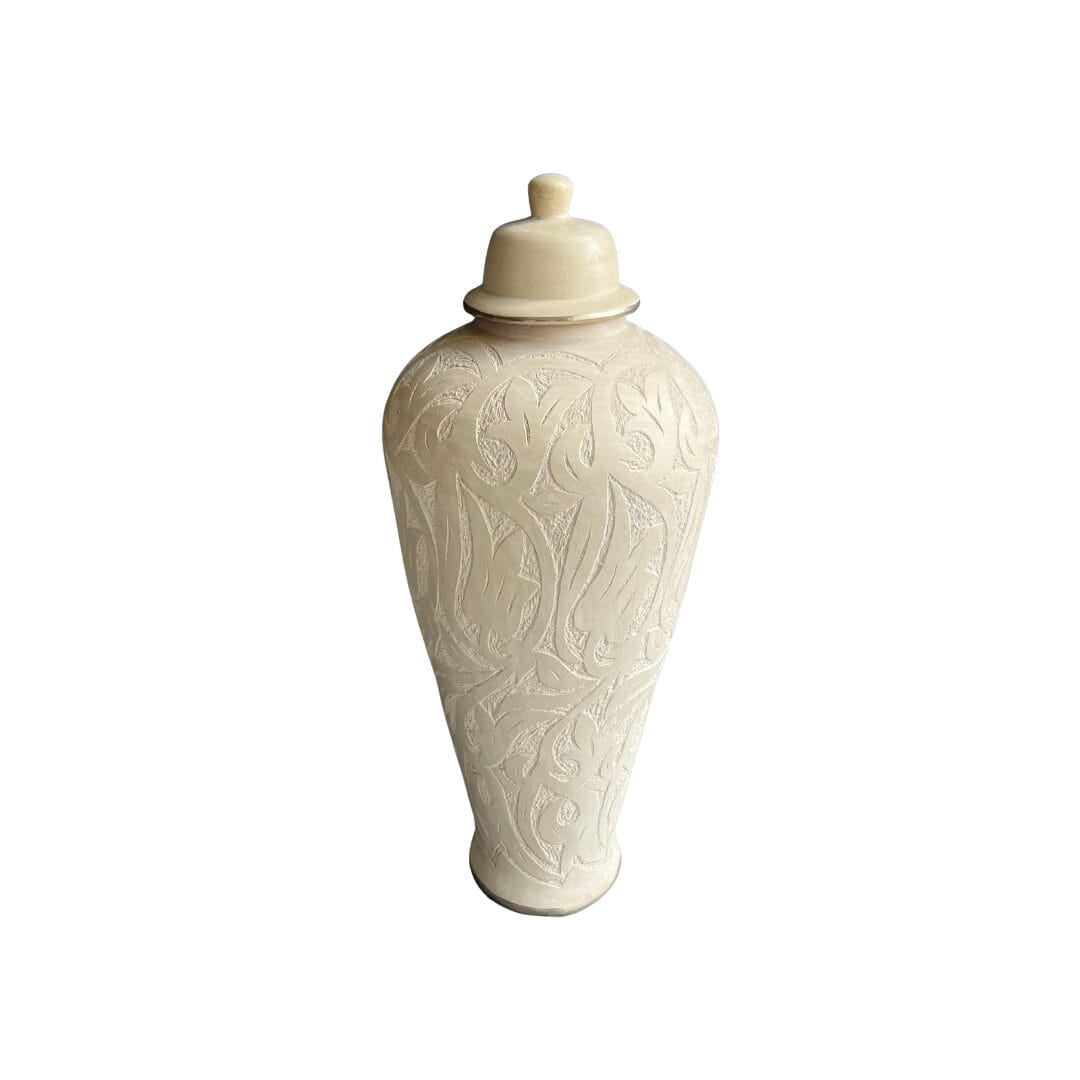 Découvrez l’harmonie entre la nature et l’art avec nos magnifiques jarres marocaines artisanales décoratives écru aux motifs floraux sculptés. Fabriquées avec soin en terre cuite, ces jarres sont conçues pour ajouter une touche de grâce et d’élégance à votre espace, que ce soit à l’intérieur de votre maison ou en extérieur. Disponibles en paire, elles sont parfaites pour encadrer une entrée, embellir un jardin ou rehausser votre décoration intérieure.