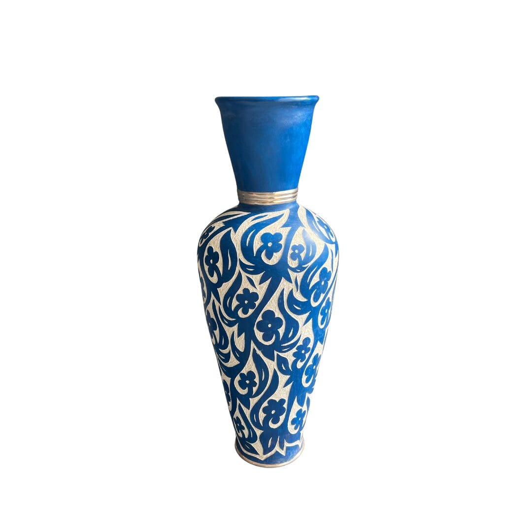 Découvrez notre jarre marocaine artisanale en terre cuite, ornée de superbes motifs floraux sculptés en bleu Majorelle et blanc. Cette jarre majestueuse, façonnée à la main par des artisans, incarne l’essence de l’artisanat traditionnel avec une touche contemporaine. Les motifs floraux détaillés et les couleurs vibrantes ajoutent une touche de fraîcheur et de raffinement à n’importe quel espace, qu’il s’agisse de votre intérieur ou de votre jardin. Idéale pour agrémenter votre salon, votre terrasse ou même un hall d’entrée, cette jarre est une véritable œuvre d’art qui attire tous les regards.