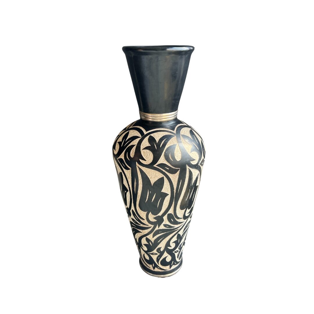 Découvrez l’élégance et le charme intemporels avec notre jarre marocaine artisanale décorative en terre cuite blanche, sublimée par des motifs floraux sculptés à la main en noir. Cette jarre est conçue pour briller à l’intérieur comme à l’extérieur de votre espace, ajoutant une touche artistique à votre décoration.